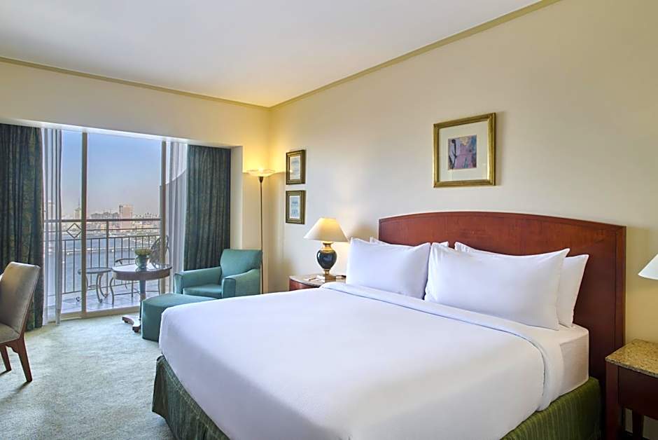 Twin Guest Room High Floor With Nile View is 366 square feet and includes 2 single beds 80-130 width plus balcony, terrace, extra beds on demand, desk, satellite tv , hairdryer, tea and coffee making facilities , ironing set, safe, bathrobes, and slippers.